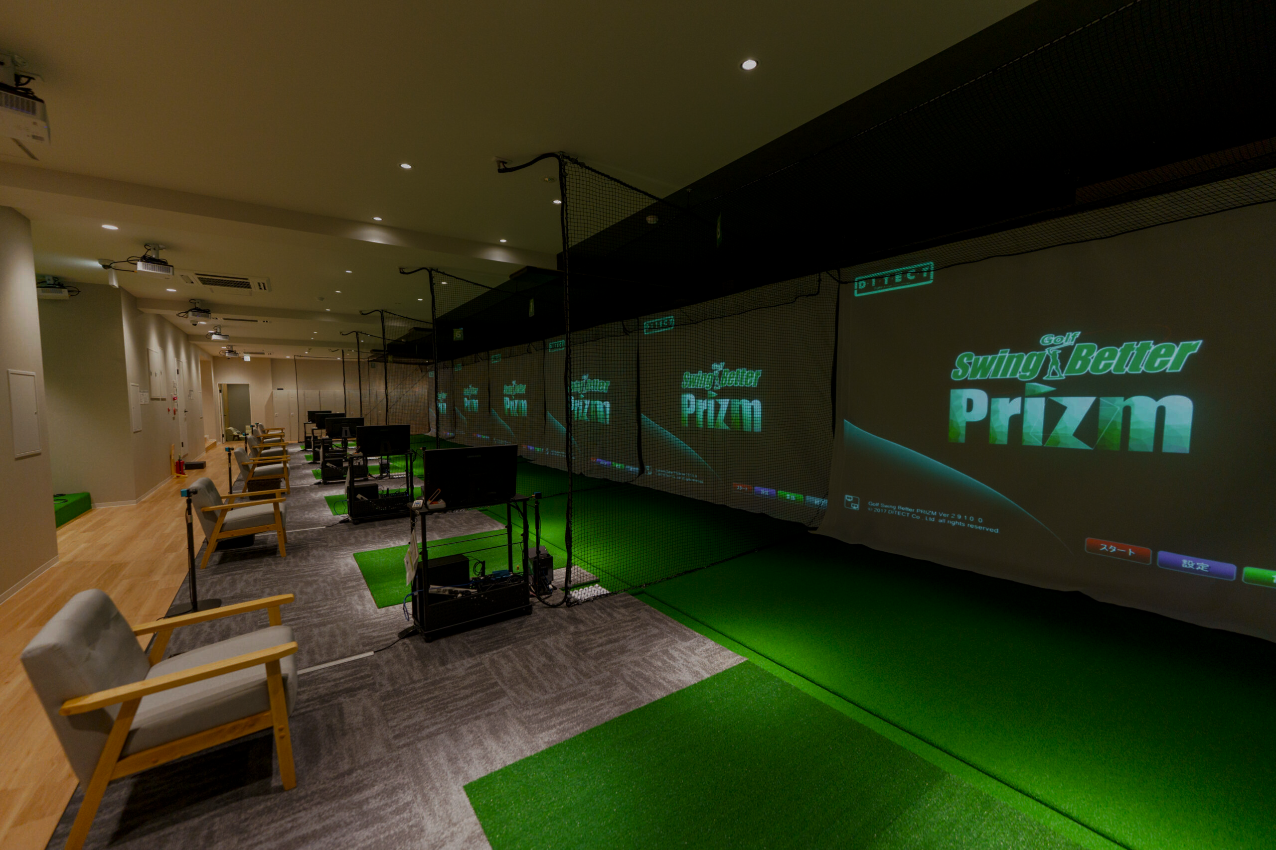 完全個室なので他の人の練習などが気にならず、集中しての練習やバーチャルラウンドを楽しむことができます。
